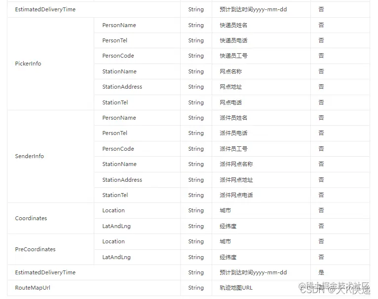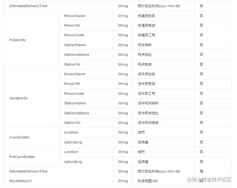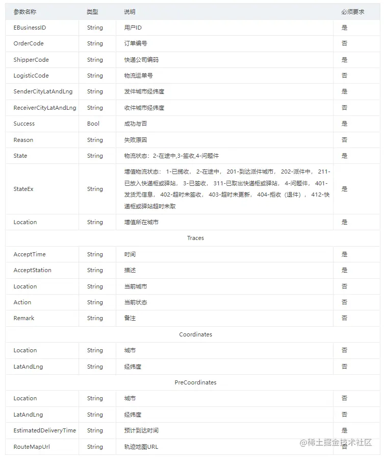 (3)返回的物流跟踪信息按照发生的时间升序排列。