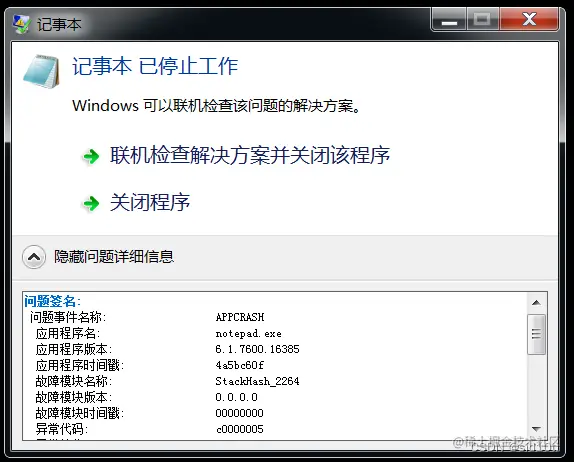 攻击之后,windows 这边弹出个记事本报错,说明该漏洞失效了...