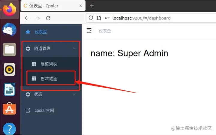 在cpolar安装完毕后,我们可以在ubuntu自带的浏览器地址栏内,输入localhost:9200,打开cpolar客户端的web-UI界面。