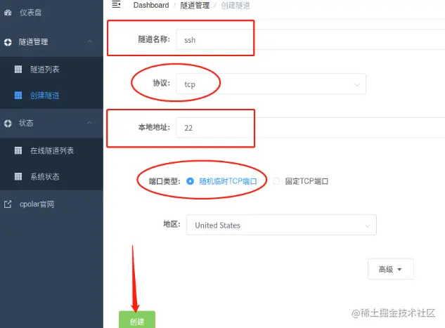 输入自己的账号密码后,找到左侧边栏“隧道管理”项下的“创建隧道”按钮,点击进入数据隧道设置页面。