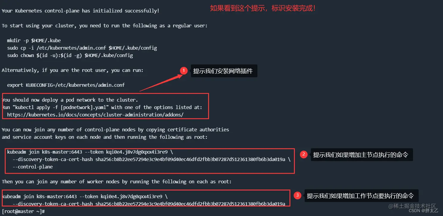 注:这个命令24小时内有效,如果超出了时间范围就执行 “kubeadm token create --print-join-command” ,重新生成一个令牌即可。
