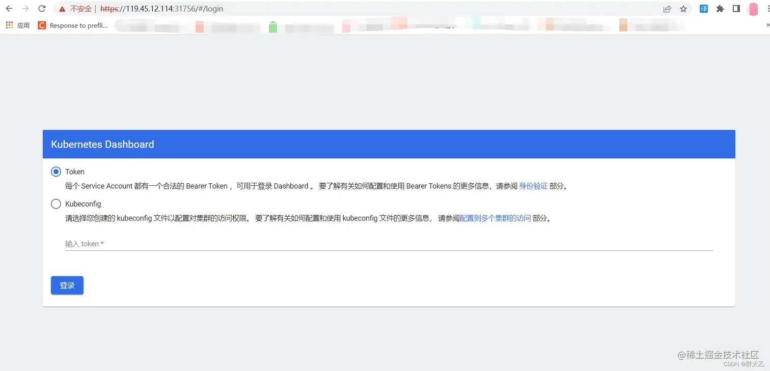 使用集群中任意IP都可以访问。例如本实例中的访问地址应该是 https://119.45.12.114:31756