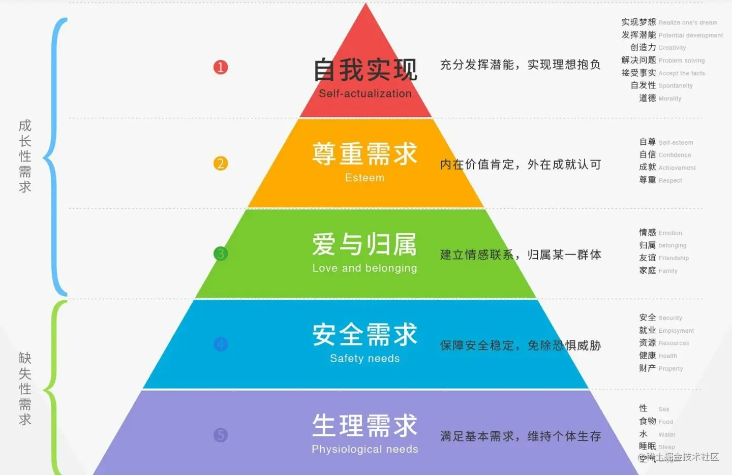 如果你已经满足了基本生存需求了,在工作中更加追求别人的尊重、团队的信任、职业上或者技能上的更进一步,那么恭喜你,你已经到了成长性需求阶段;