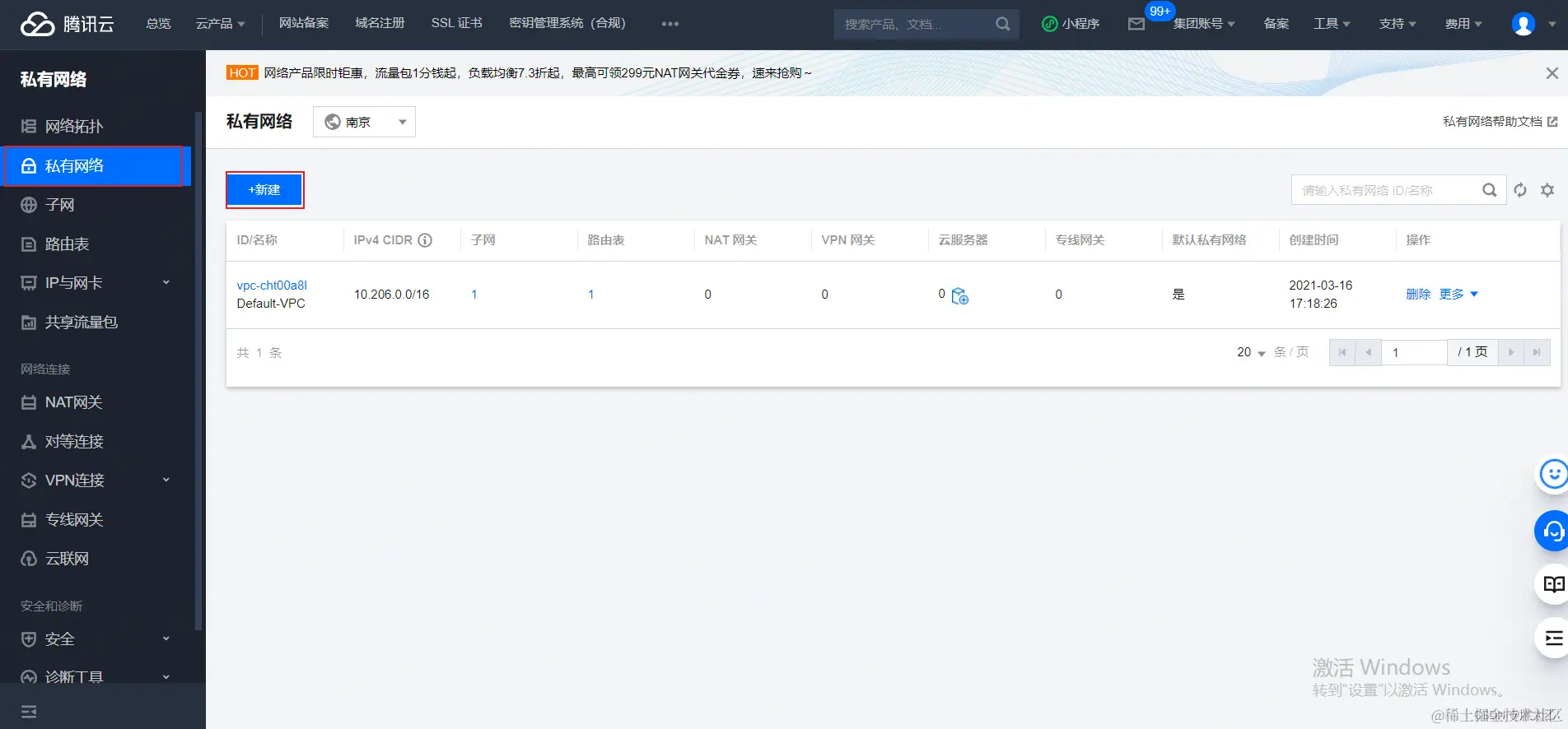 在购买云服务器之前,先了解下什么是私有网络。官网给出的解释是:私有网络(Virtual Private Cloud,VPC)是一块在云服务器上自定义的逻辑隔离网络空间,可以使云服务器, 云数据库资源构建逻辑隔离的、用户自定义配置的网络空间,以提升用户云上资源的安全性,并满足不同的应用场景需求。我觉得说简单点就是让云应用可以使用局域网内通信。提高通信速度和效率。我在这里使用腾讯云进行演示。其他的云服务商操作步骤也相差不大。【如果是新用户可以去购买实例,会便宜很多。 【腾讯云】云产品限时秒杀,爆款2核2G云服务器,首年58元】