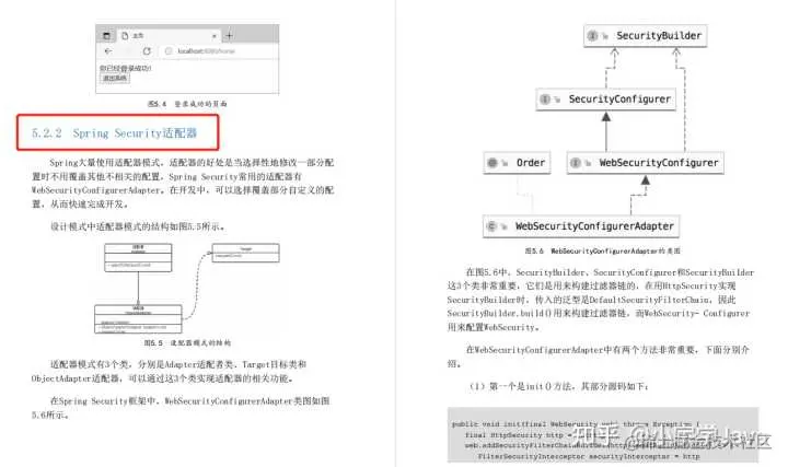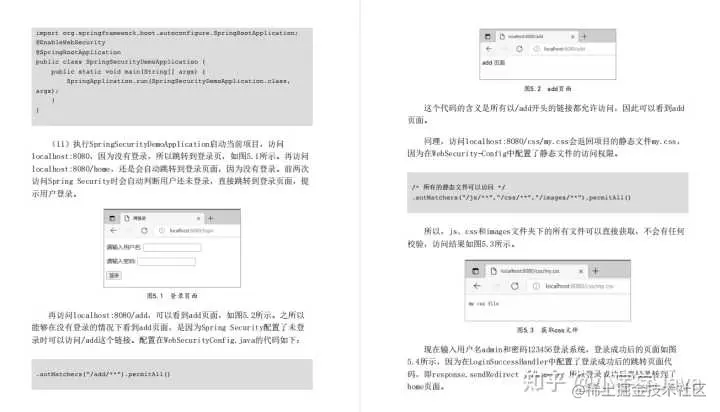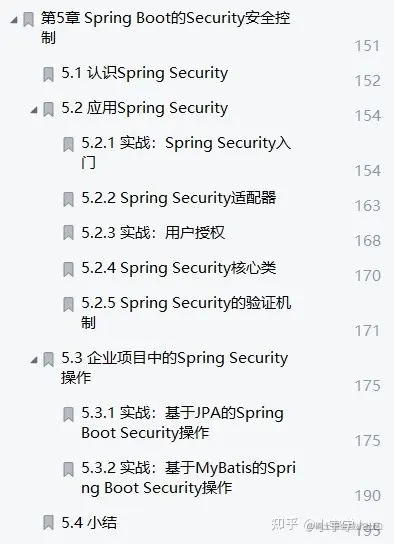 本章介绍了如何使用WebSecurityConf igurerAdapter适配器来配置项目的权限及用户授权信息,还介绍了Spr ing Security的核心类AuthenticationManager以及验证机制和验证流程,最后介绍了如何使用JPA和MyBatis完成一个简单的权限验证。