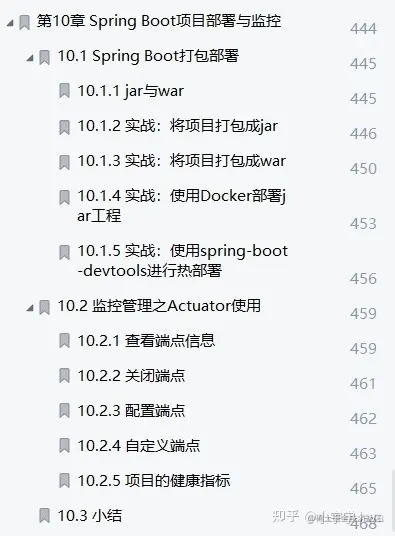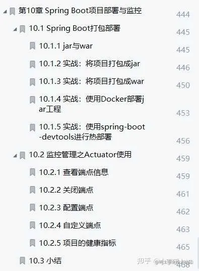 本章介绍了Java项目打成jar包和war包的区别,还介绍了使用Docker将jar构建成自己的镜像后运行项目的过程。在Spring Boot中,可以使用Actuator通过不同的端点查看不同项目的运行情况,常用的端点包括查看项目环境和配置信息的env、查看项目健康信息的heal th、查看项目信息的info和所有请求入口的mappings
