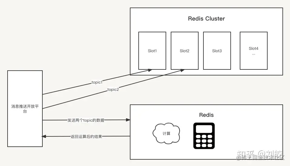 - 额外提供一台专门用来计算的redis服务器,需要运算时,将各个topic的数据先写入该台redis,然后做运算,返回结果后将数据删除。