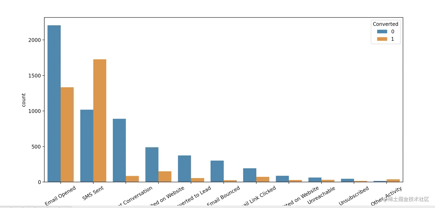 - “ Email Opened ” 和 “ SMS Sent ” 是最后产生最大潜在客户数量的活动,并且转化率也不错。