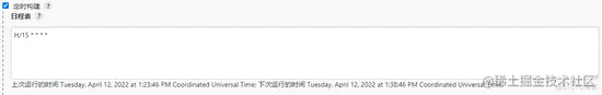 在显示出来的日程表的写入Jenkins支持的定时表达式,Jenkins会根据表达式自动给个提示,显示出下次运行时间,而关于定时表达式的相关内容,我们继续往下看