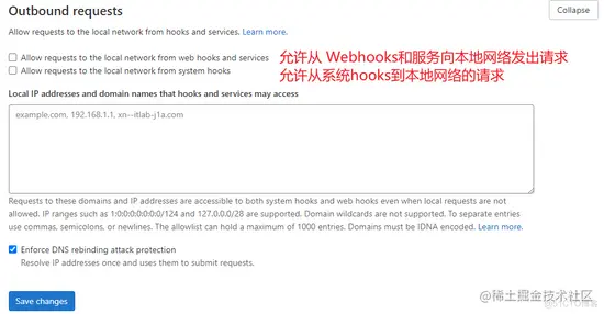 当前配置在GitLab位于 Menu>Admin>Settings>Network> Outbound requests 下