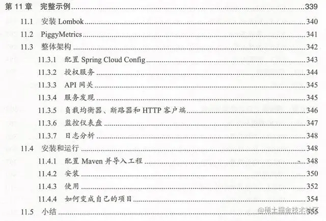 第11章通过对PiggyMetrics的全面讲解,让读者能够了解一个简 单的微服务架构所包含的技术点和构建原则,并且实际部署微服务,完成业务的基础操作。