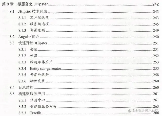 第八章对微服务的最佳实践 JHipster 进行系统的介绍,并且对 JHip ter 部分内容做了处理, 将在国内不是很流行的部分进行了处理,尽可能详细地介绍 JHipster 应用和配置。