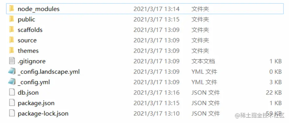 中多了许多文件, 此时 Hexo 框架的本地搭建已经完成了。