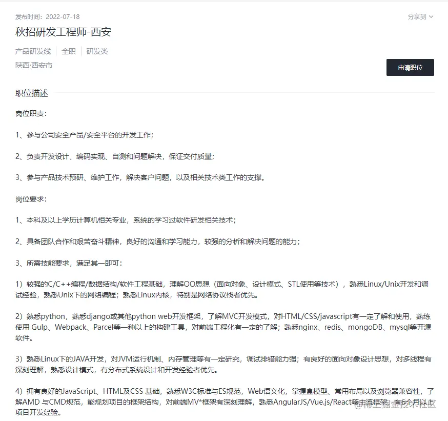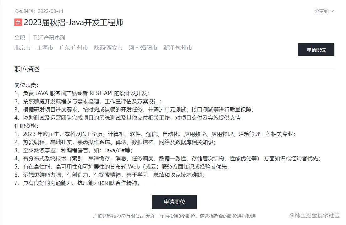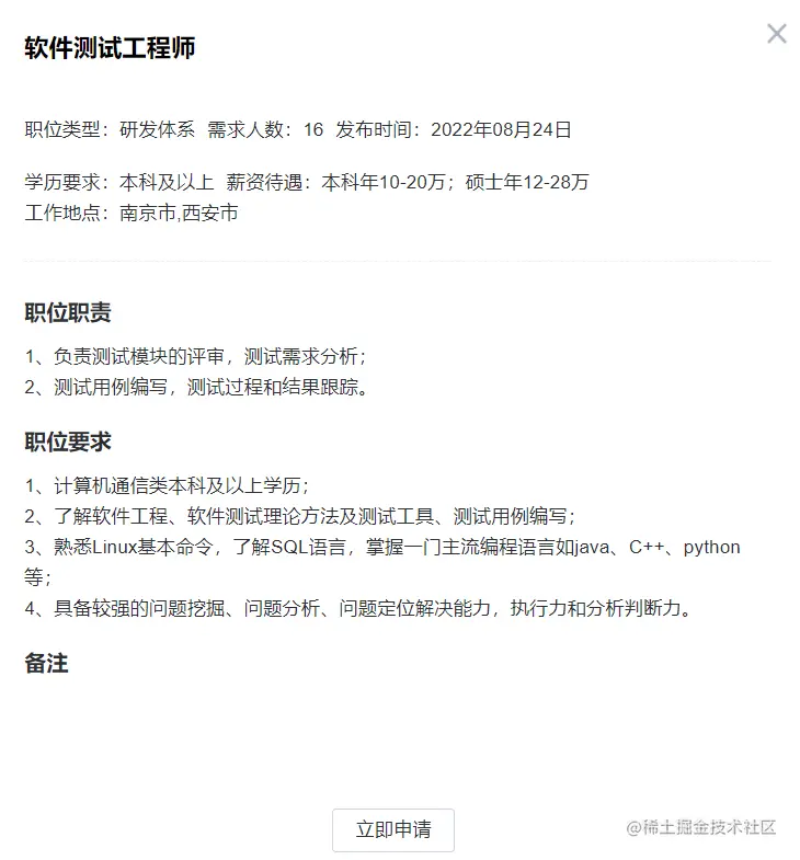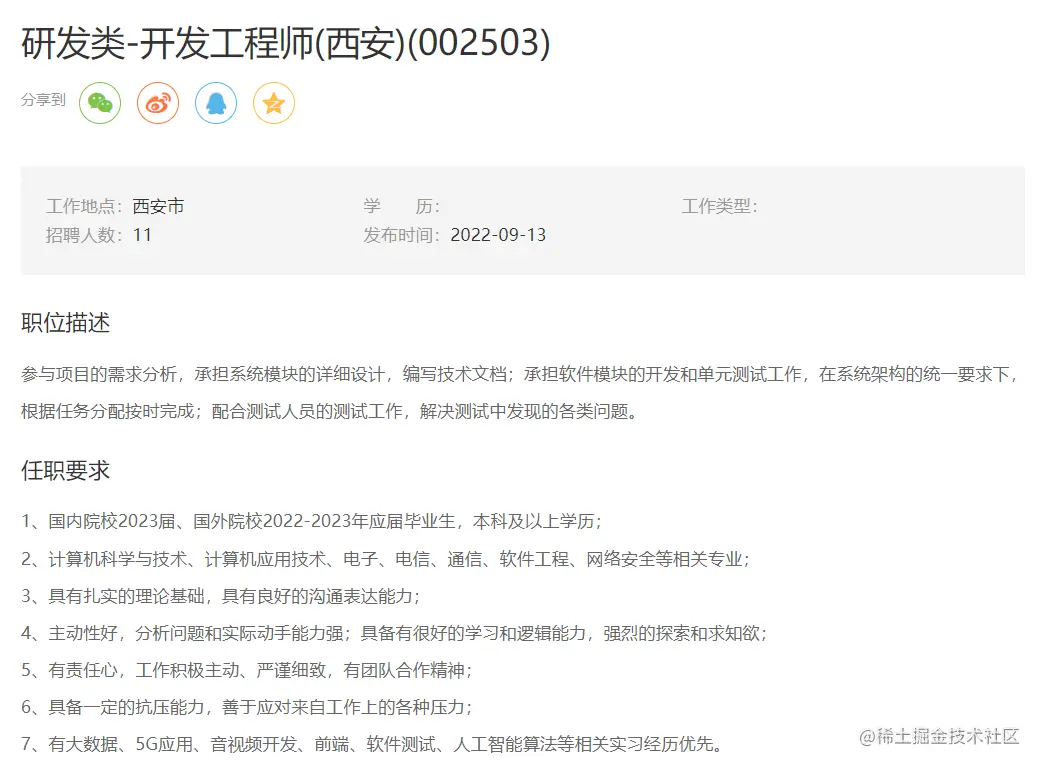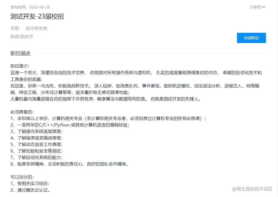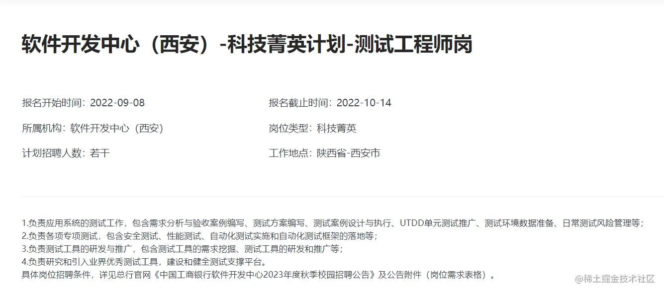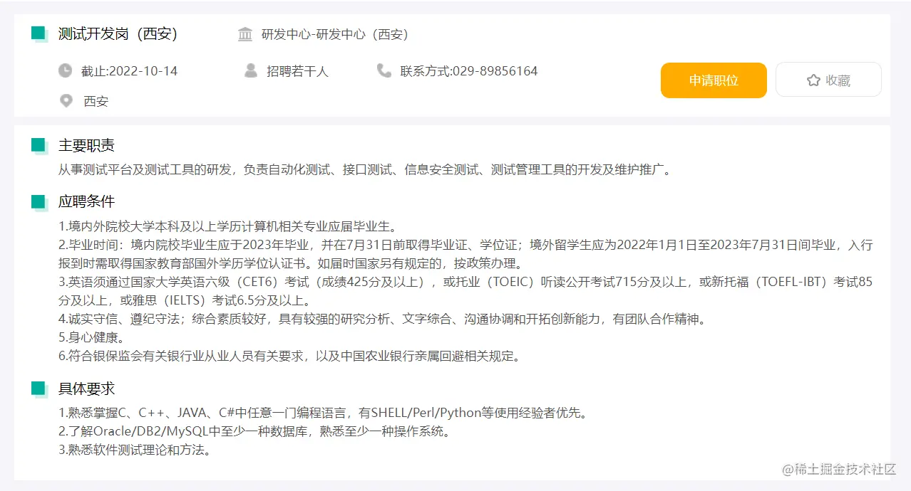 我是2024校园招聘的(今年是2023校园招聘),双985硕非科班,食品专业转码,目标城市西安,主攻JAVA后端开发和测试开发的岗位,以下信息是我收集的部分较为出名的企业的JAVA和测开招聘,如果有和我一样关键词是转码、西安、JAVA、测开的同学,可以码住收藏,大家一起努力!