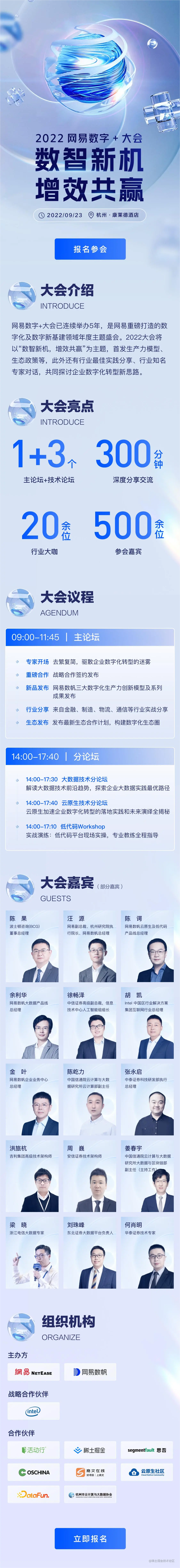 9月23日,以“数智新机,增效共赢”为主题的2022网易数字+大会即将在杭州召开,将邀请到众多业务一线专家大咖,结合行业前沿趋势和丰富实践经验,带来鞭辟入里、精炼易懂的数字化转型精彩分享。超过300分钟沉浸式深度交流,邀您共同探索企业聚势共赢,创新增效之道!
