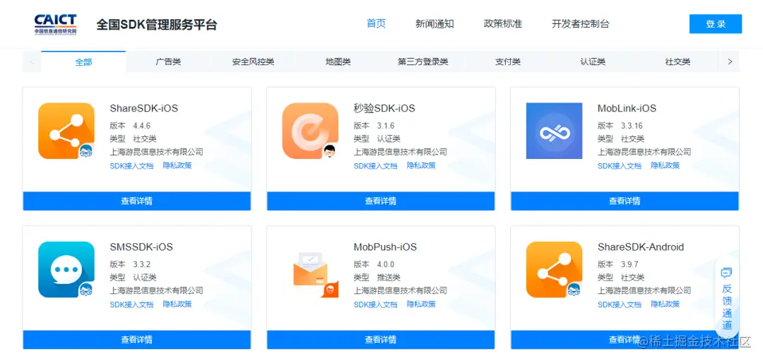 全国SDK管理服务平台(sdk.caict.ac.cn)是由工业和信息化部指导,中国信通院技术与标准研究所牵头搭建,旨在为SDK和APP开发运营者提供SDK政策标准发布、产品信息公示、监管问题处置、用户使用反馈等服务,提升SDK合规水平和服务能力。APP开发者可通过平台高效筛选出服务能力、安全水平更优的SDK服务商,保障APP合规运营,推动业务更好发展。
