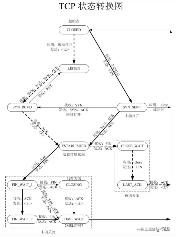 ·CLOSED: 关闭状态,没有连接活动