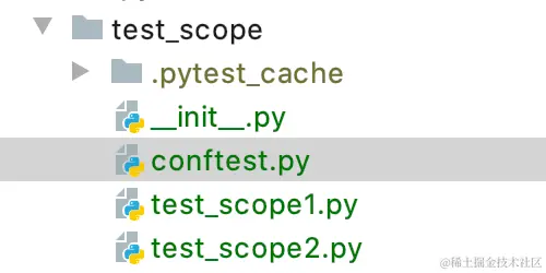 创建目录 test_scope,并在目录下创建三个文件 conftest.py,test_scope1.py 和 test_scope2.py。
