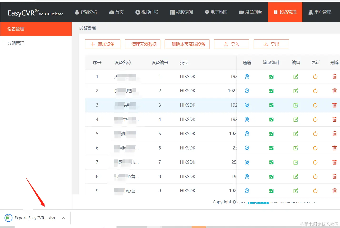 有用户反馈,在迁移服务器时,将EasyCVR打包到新服务器重新解压之后,使用设备管理导出设备通道相关信息,出现了报错情况,提示“模板文件未找到”,于是请求我们协助排查。
