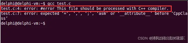 这份代码中间那一部分是用 C++ 写的,所以用 gcc 编译器时,编译会报错,其中 #error 那个是我们自定义的错误。