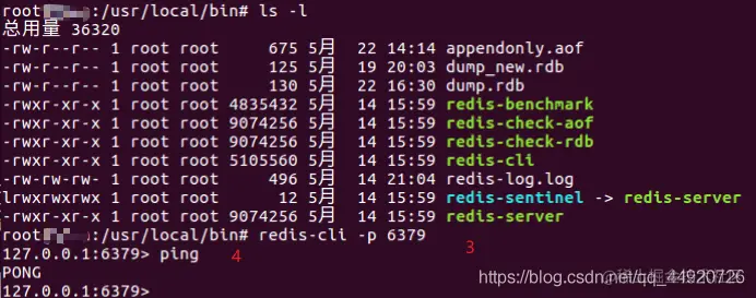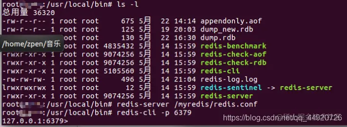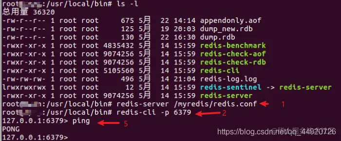 /usr/local/bin目录下运行redis-server,运行拷贝出存放了自定义conf文件目录下的redis.conf文件