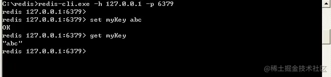 切换到redis目录下运行 redis-cli.exe -h 127.0.0.1 -p 6379 。