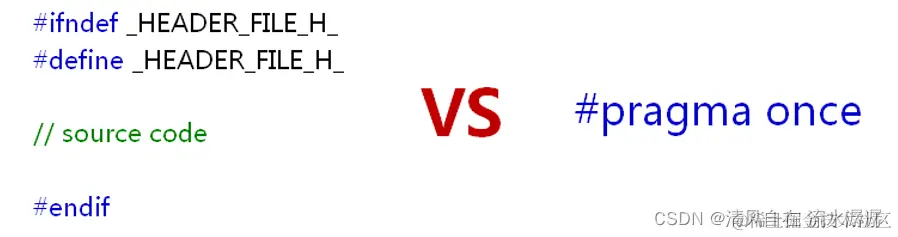 下面两种方式的区别是:前者是被 C 语言所支持的,并不是只包含一次头文件,而是包含多次,然后通过宏控制是否嵌入到源代码中,也就是说通过宏的方式,可以保证头文件里面的内容只被嵌入一次,但是由于包含了多次,预处理器还是处理了多次,所以效率上来说比较低;后者是告诉预处理器当前文件只编译一次,所以说效率较高。