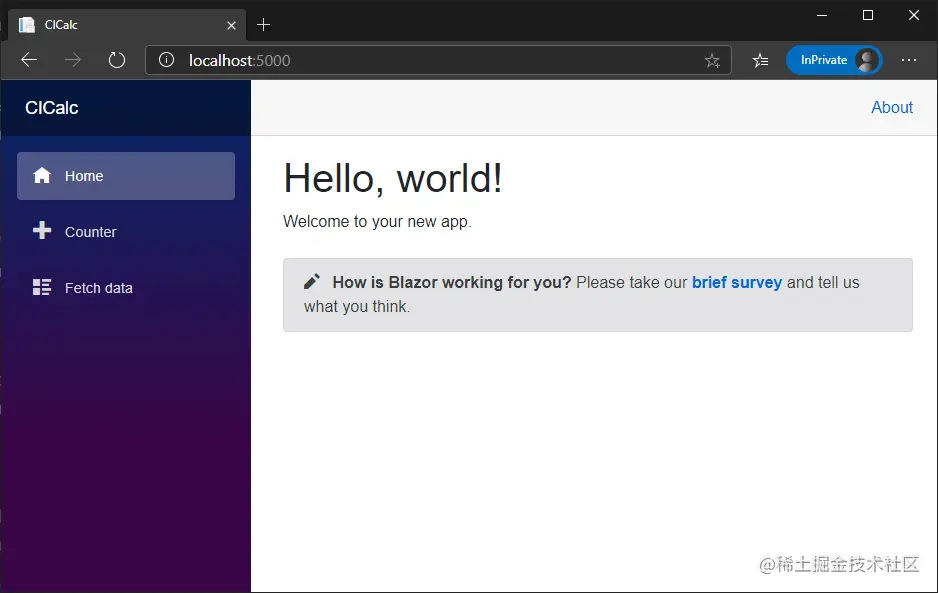 VScode中的集成终端cd到项目开发的目录,然后运行下面命令来搭建blazor脚手架