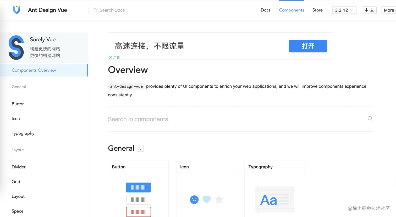 Ant Design Vue官网 https://www.antdv.com/components/overview
