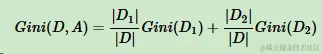 对于样本D,个数为|D|,根据特征A的某个值a,把D分成|D1|和|D2|,则在特征A的条件下,样本D的基尼系数表达式为: