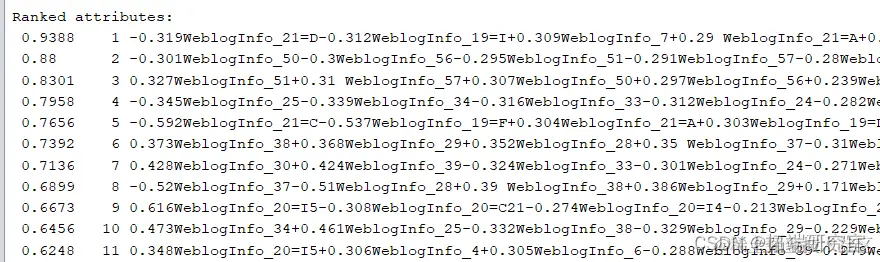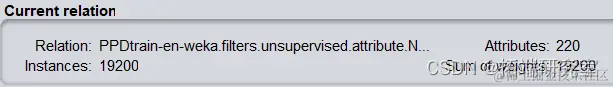 至此预处理完毕,对训练集与测试集进行同样处理,为避免测试集与训练集不匹配问题,用记事本打开测试集.arff文件修改表头至与训练集一致。