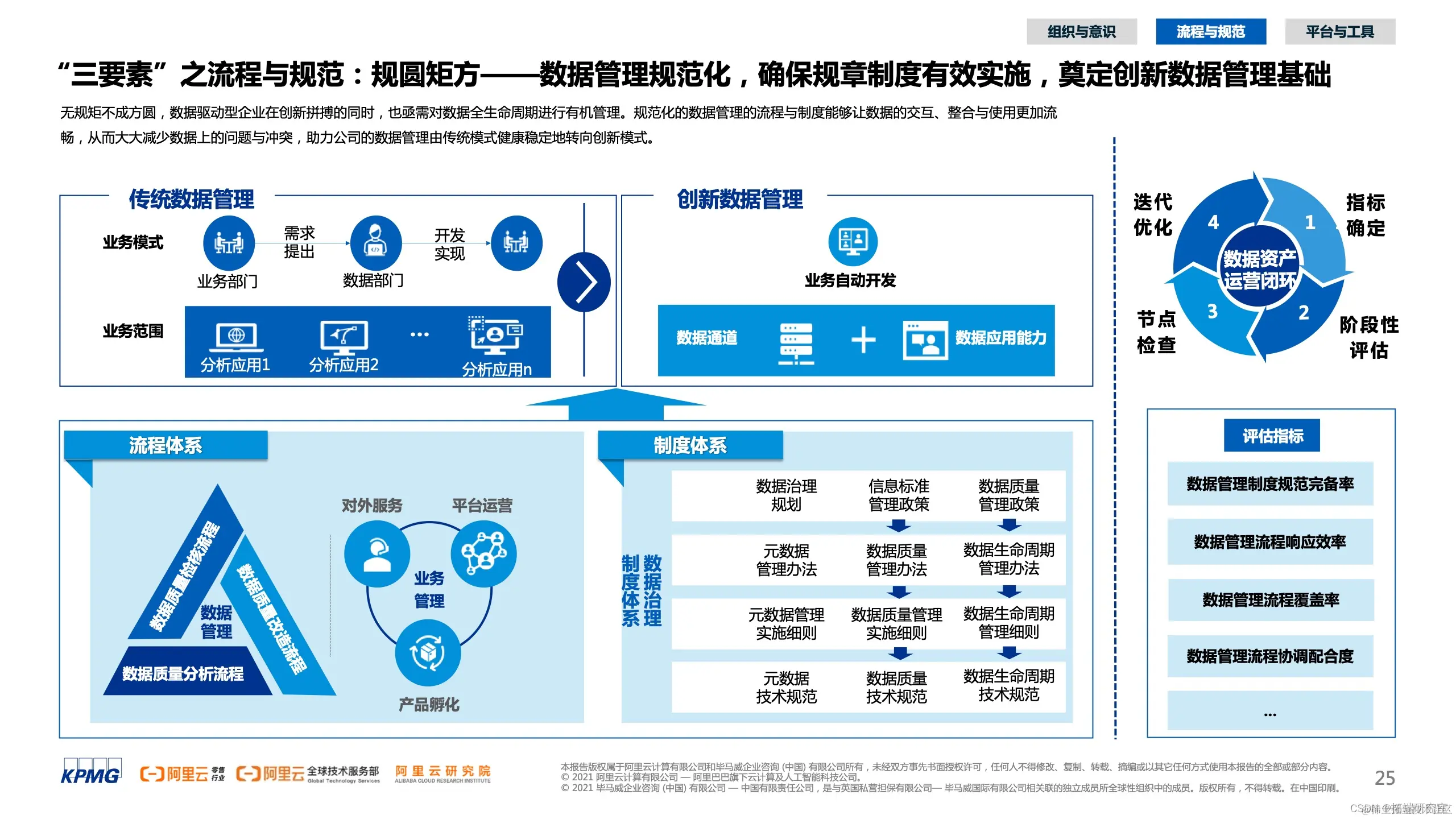 - “三要素”之流程与规范:规圆矩方 —— 数据管理规范化,确保规章制度有效实施,奠定创新数据管理基础