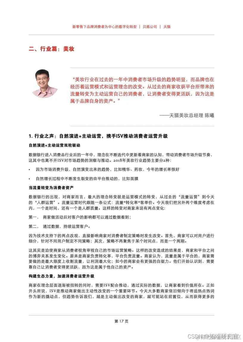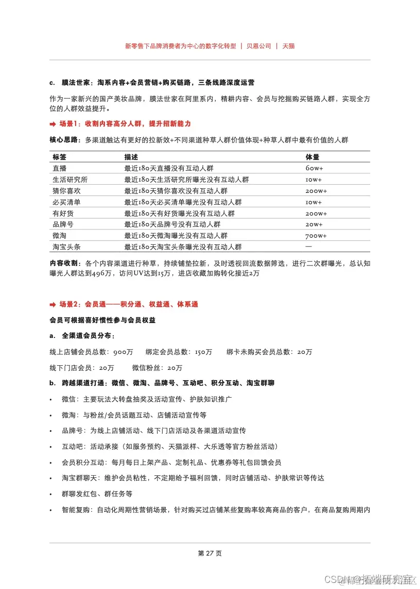 白皮书显示,阿里巴巴目前拥有超过五亿用户,成为中国领先的网上商城和各大品牌争相发力平台。作为B2C模式为代表的天猫,也逐渐成为了品牌运营的核心阵地。在数据银行、会员通等一系列数字化消费者运营工具被引入天猫平台后,其所产生的消费者洞察在不断迭代中在更新着品牌的认知,带动消费者市场不断升级。