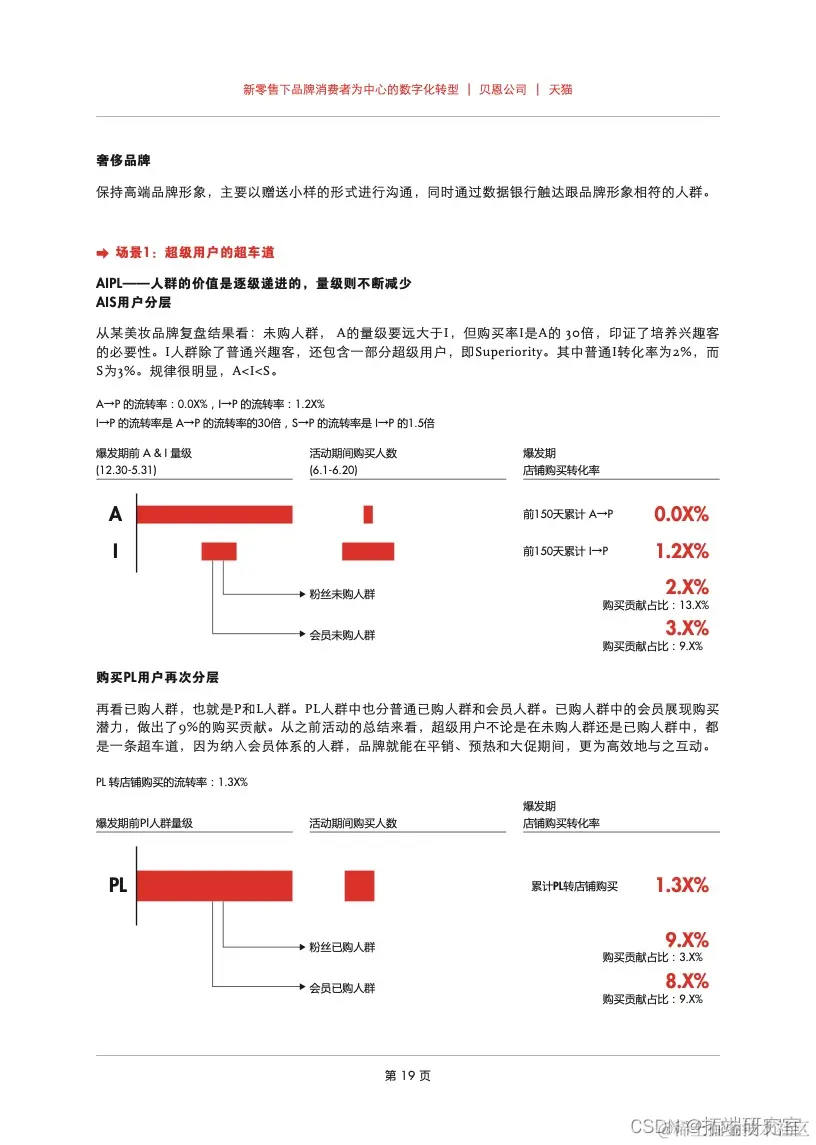 FAST指标为品牌数字化转型提供了有力抓手,帮助品牌从一个全新且更加全面的视角观察消费者的组成结构和行为路径。品牌可以借此准确定位消费者群体,并依照每一个消费者的路径状态和消费习惯进行定制化的管理,使得潜在消费者群体价值得到最大限度的开发。此外,品牌还可以通过FAST四项指标与行业内领导者的对比,从这四个指标所代表的环节中寻找机会,并结合全域营销采取相应的营销手段进行提升。
