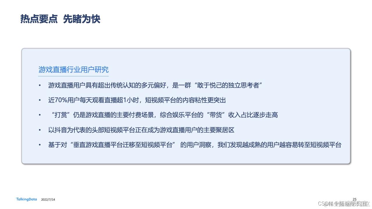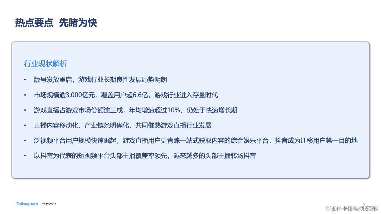 在此趋势下,游戏直播的整体行业现状如何?用户的偏好和特点有哪些?用户在不同平台间的迁移有哪些特征?2022年,游戏直播相关从业者又该如何在纷繁复杂的环境下拨云见日,实现突围?