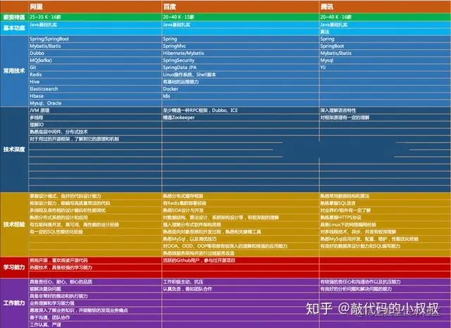 由于文章篇幅内容有限,面试到的公司不可能面面俱到,所以这里选取了6家具有代表性的互联网公司,然后对这两个梯队的互联网公司的面试进行了详细的分析,用宏观的角度来将这些互联网公司的面试考点进行了汇总。