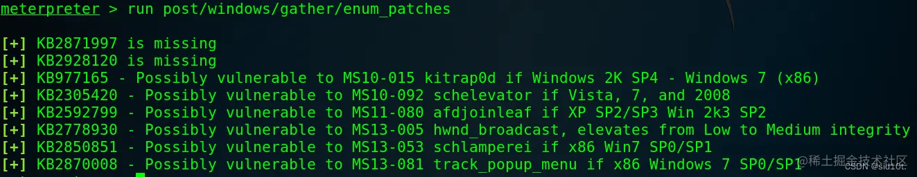 7、查看补丁:post/windows/gather/enum_patches