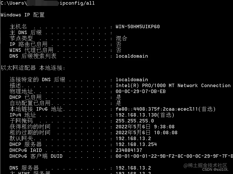 ipconfig /all 判断存在域-dns