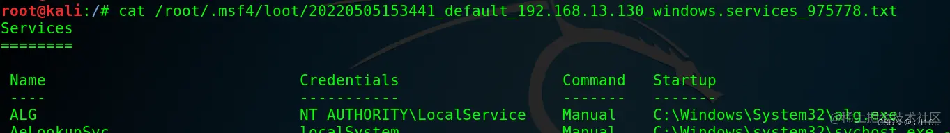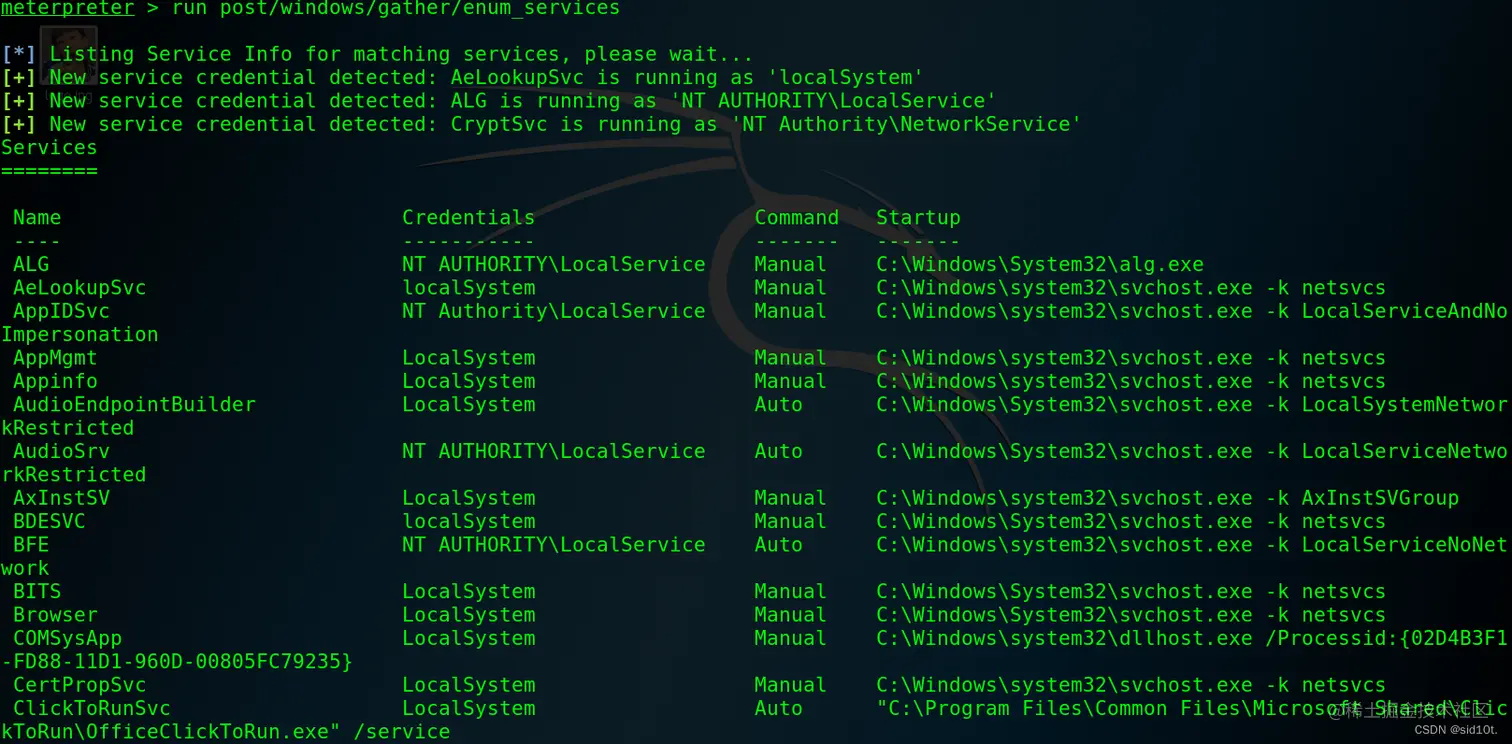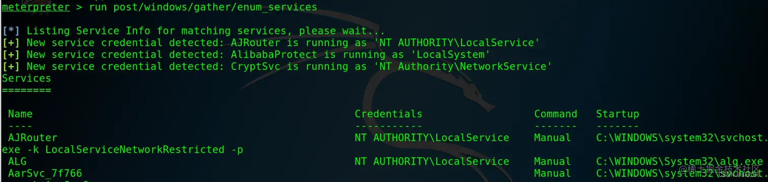 3、开启了那些服务:post/windows/gather/enum_services