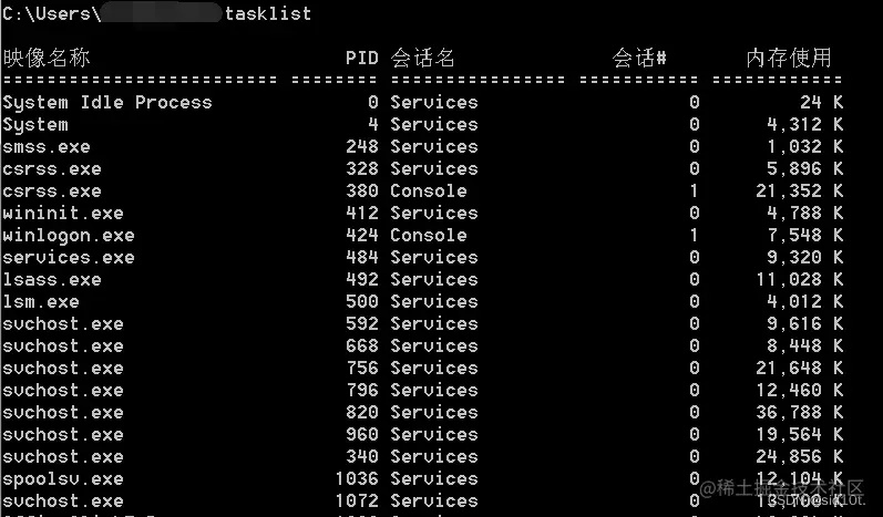 进程列表 tasklist: