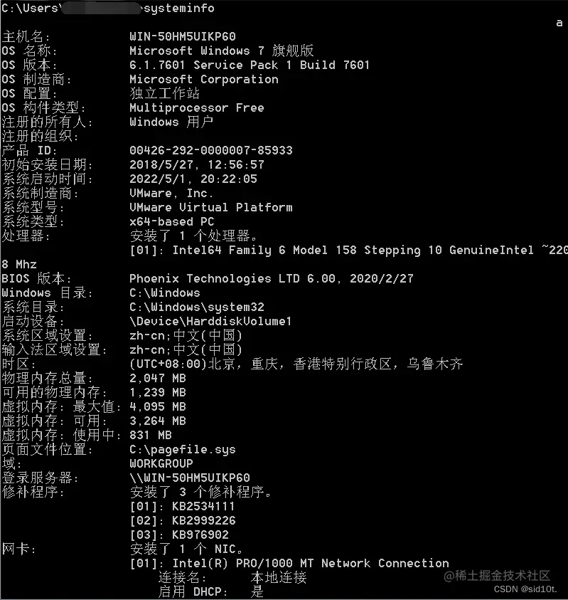 systeminfo 详细信息