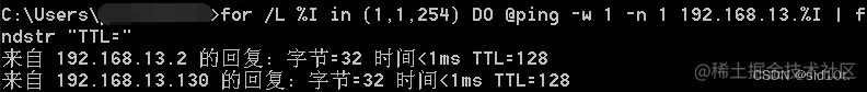 for /L %I in (1,1,254) DO @ping -w 1 -n 1 192.168.13.%I | findstr "TTL="