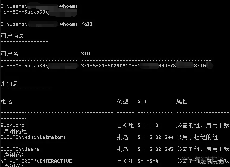 whoami /all 用户权限
