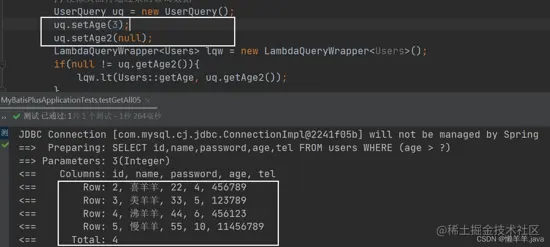 // qw4.lt(Users::getAge, 8).gt(Users::getAge, 3); 链式编程!