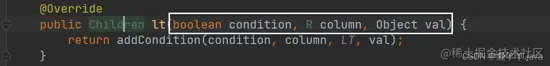 实现的核心在于lt()、gt()方法,condition为boolean类型上述的 null!=bq.getPrice2() 与之对应, 返回true,则添加条件,返回false则不添加条件,条件的生效与否就是靠的这个设计!