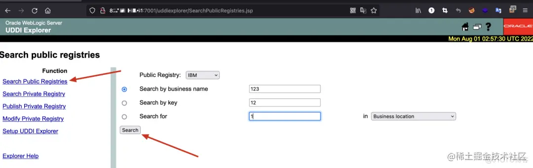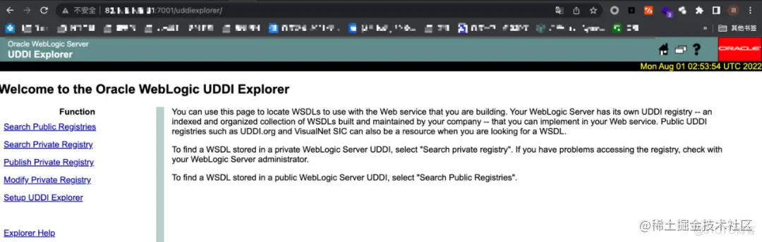 访问http://Ip:7001/uddiexplorer, 无需登录即可查看uddiexplorer应用。