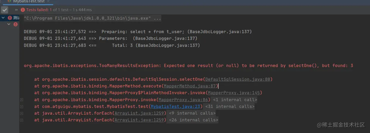 org.apache.ibatis.exceptions.TooManyResultsException: Expected one result (or null) to be returned by selectOne(), but found: 3