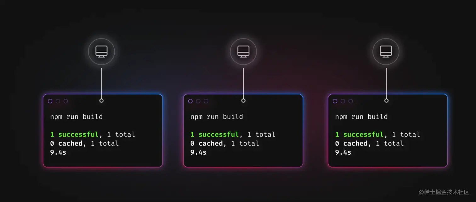 我们发现,每个人本地去运行一些 task,那么这个缓存只有在开发者个人的电脑上才能享受到。